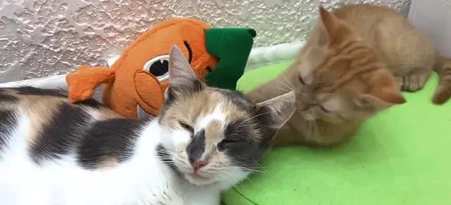 流浪小橘猫钻玩具堆讨好花猫,咬耳朵挨一巴掌,最后成一家人